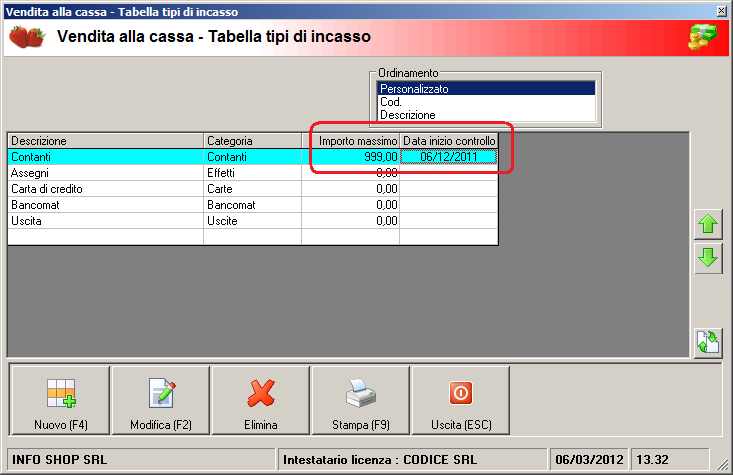 Modulo: Vendita alla cassa -Aggiunta la possibilita' di indicare un importo massimo per ogni forma di pagamento (utile ad esempio per impostare un vincolo sull'incasso di contante in base alla nuova normativa antiriciclaggio del 13 agosto 2011)