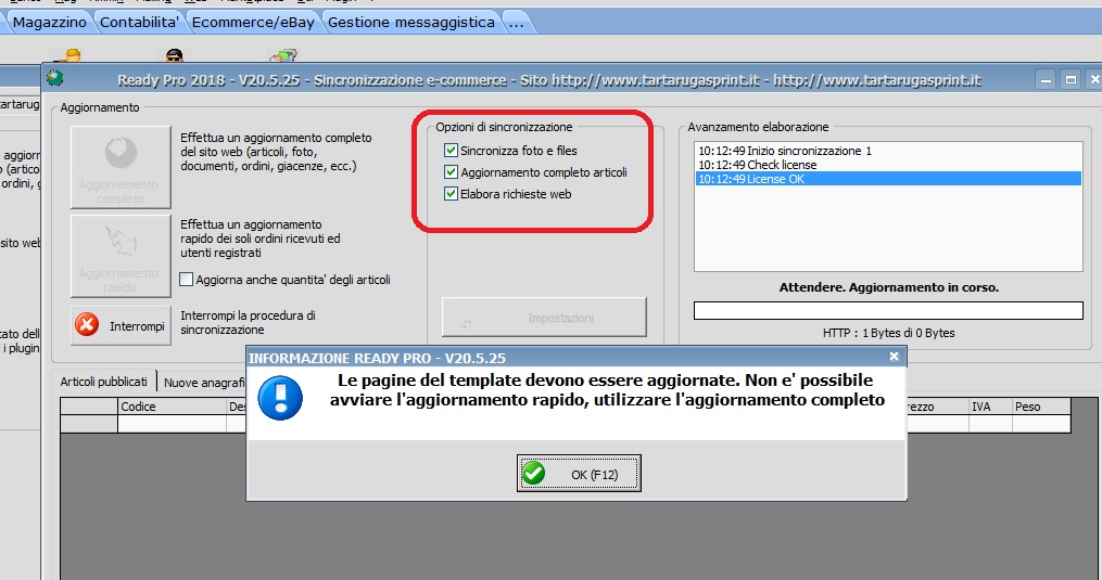 Salve, Ready mi dice che non posso utilizzare l'aggiornamento rapido ma devo utilizzare l'aggiornamento completo. Un pò di tempo fà, mi è già capitato che Ready mi chiedesse la stessa cosa e facendo l'aggiornamento completo, Ready ha esportato tutta una serie di foto non corrette su Prestashop, creandomi non pochi problemi, forse perchè erano spuntate le opzioni di esportazione delle foto. Domanda: E' corretto che, se io non spunto le opzioni di sincronizzazione, non dovrei esportare nessun dato su Prestashop?. Grazie.