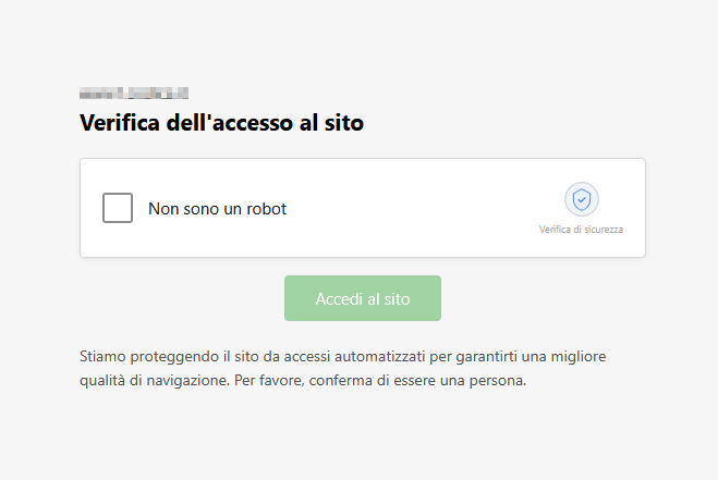 1) Se viene rilevato un rallentamento sul sito (cosa che generalmente avviene quando il sito è sotto "attacco" e riceve un numero troppo alto di chiamate, al primo accesso viene mostrata una finestra come quella sottostante (form captcha). Questo consente di filtrare/escludere il traffico malevolo, consentendo comunque agli utenti "reali" di accedere.