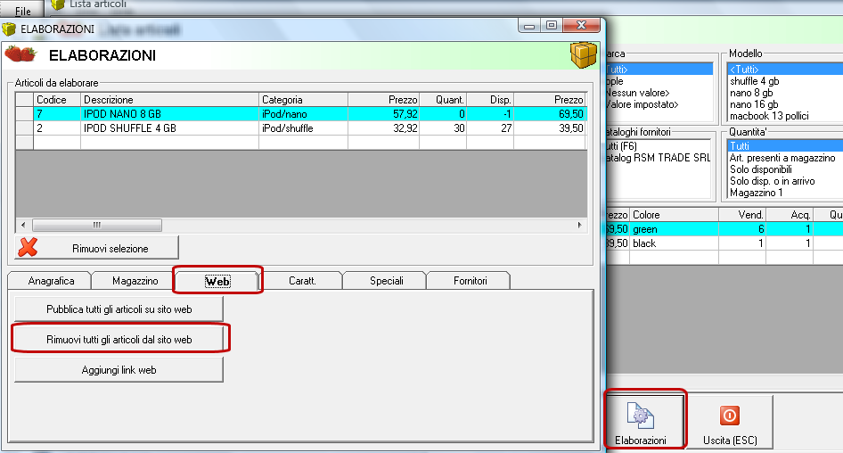 Vorrei fare una domanda forse banale, ma che incide pesantemente sulla manutenzione del sito. Un fornitore che ha a listino un numero considerevole di prodotti, è stato momentaneamente sospeso per verifiche etiche. [color=red:81412e85b8]Vorrei sapere se agendo sullo stato del fornitore (non attivo) automaticamente anche il flag di "Articolo su internet" va automaticamente a "no" o per non abilitarli a internet devo agire singolarmente su tutti gli articoli ? Se questo automatismo non è previsto, in considerazione di casi come quello descritto, sarebbe un bel modo di operare generando una modifica automatica su tutti i prodotti. grazie