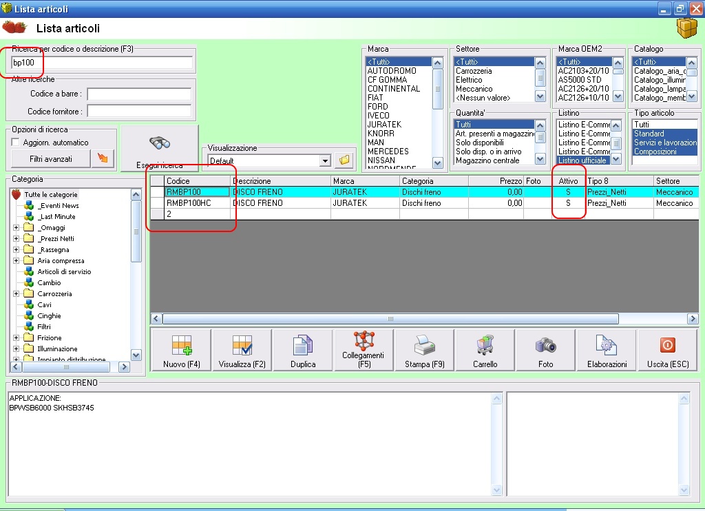 Salve, vi chiedo di aiutarmi, ho un problema grave sull' e-commerce. Abbiamo pubblicato diversi articoli. Sul programma mi risultano tutti pubblicati ed attivi, ma se cerco dal sito mi da solamente un articolo. mi spiego meglio. abbiamo ad esempio due codici il BP100 ed il BP100HC, sono entrambi dei dischi freno. Se cerco dal programma BP100 mi escono sia il BP100 che il BP100HC, ma se vado sul sito e cerco BP100 mi da solamente il BP100HC e non entrambi. Questo problema lo da per tanti articoli!!!!! sono attivi, sono pubblicati , li ho ripubblicati ieri, ma non riesco a capire il problema..... di segiuto ho allegato diversi JPEG per farvi capire !!!