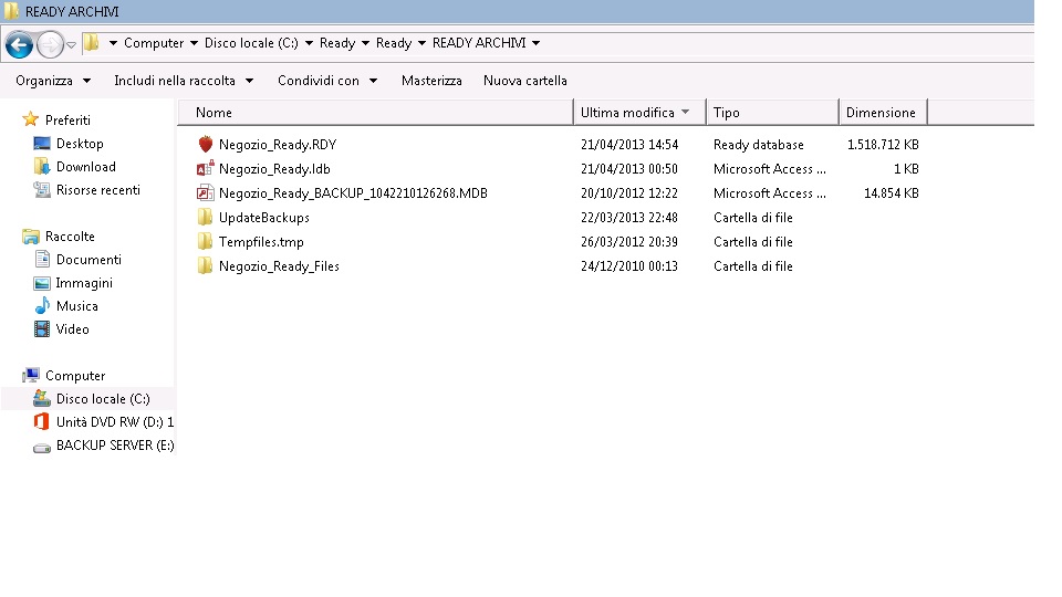 Adesso ho solo il backup che Ready Pro fa automaticamente ogni giorno, quello impostato in UTIL/Copia di sicurezza Archivi