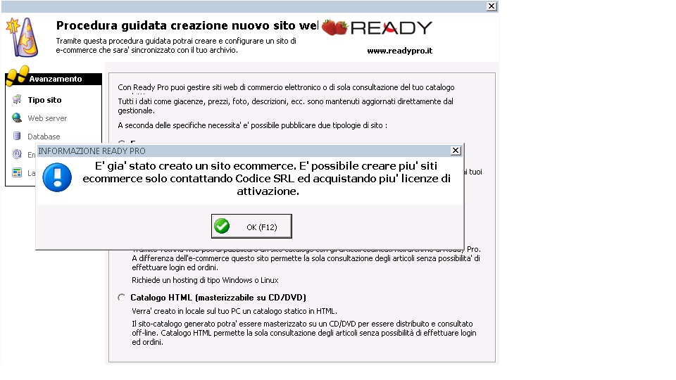 Ho eliminato i 2 siti e-commerce per poi ripubblicarli, ma Ready Pro mi da un messaggio che il sito è già stato creato anche se ho eliminati entrambi i siti e-commerce (allego immagini) cosa posso fare?