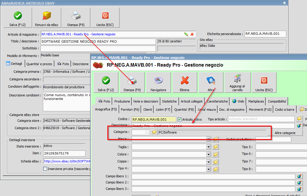 Altrimenti il programma non potrebbe sapere quale modello usare (esempio se l'articolo X e' collegato a 4 categorie, ognuna con un modello diverso, deve ovviamente esserci una categoria fissa a cui Ready Pro deve fare riferimento, e la scelta ricade chiaramente sulla categoria primaria)