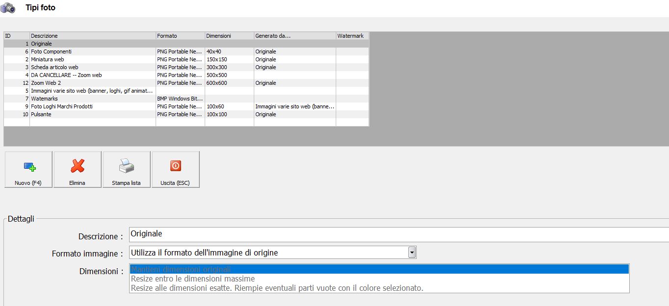 Inoltre per paura di fare guai, volevo cancellare tutti i tipi di foto che non vengono più utilizzati dal sito in quanto ogni formato contiene 21000 foto.