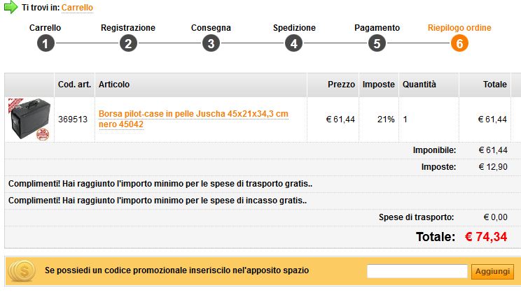 Citazione: devo però farvi notare che sarebbe meglio mettere lo spazio "COUPON" già nello step 1 (Carrello) e non dover far attendere il cliente di finire l'ordine poichè in questo momento il codice Coupon lo si può mettere solo nello step 6 (riepilogo carrello). E' stata fatta questa scelta perche' il codice coupon non compare sempre e comunque, ma solo se il cliente ed il contenuto del carrello sono tali per cui esistono dei codici coupon utilizzabili.
