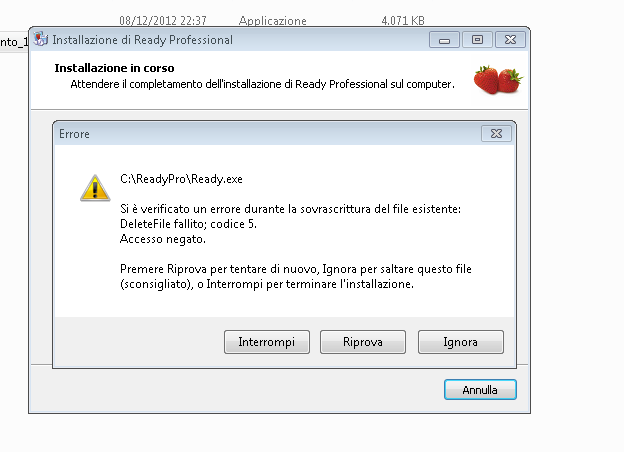 come posso fare per ovviare il problema..? ho provato a spostare la cartella C:\\\\ReadyPro in un'altra cartella chiamata Ready , così da far visualizzare all'installer il percorse che vuole di default.. ma picche non và...