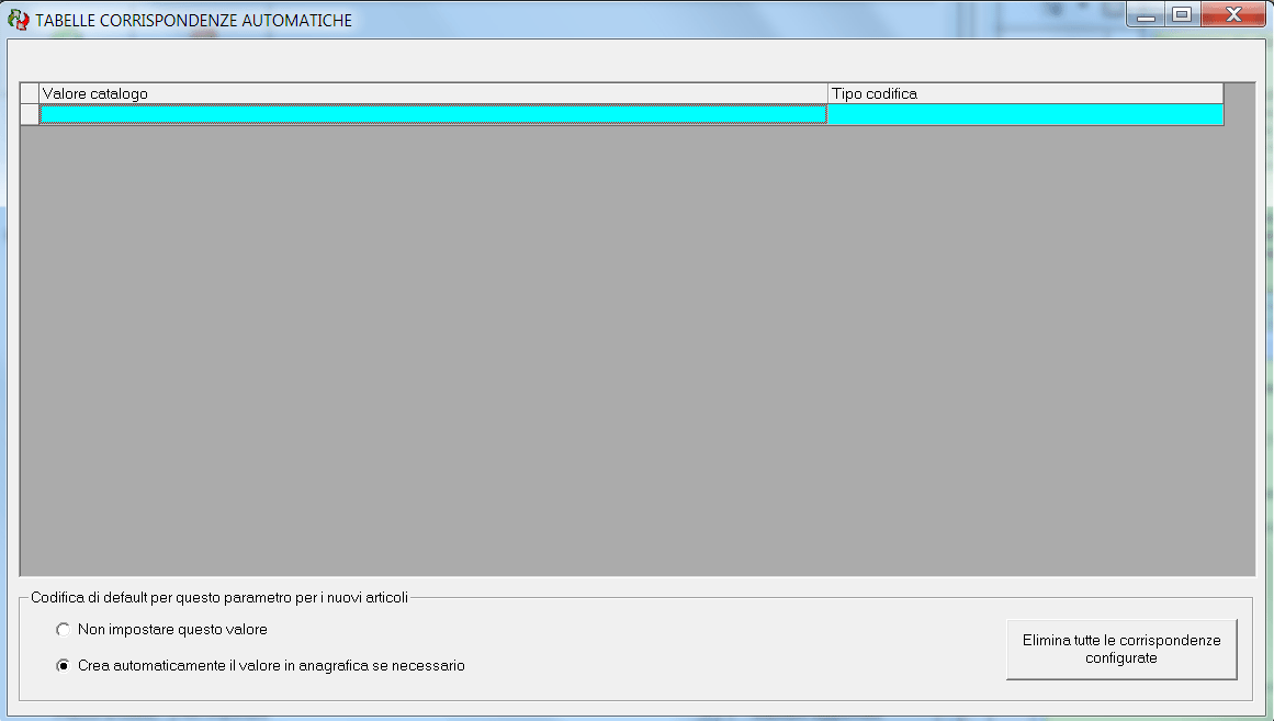 Allego anche quello che mi esce cliccando su "Tabella corripondenze" che è vuota, come faccio ad inserire le voci?