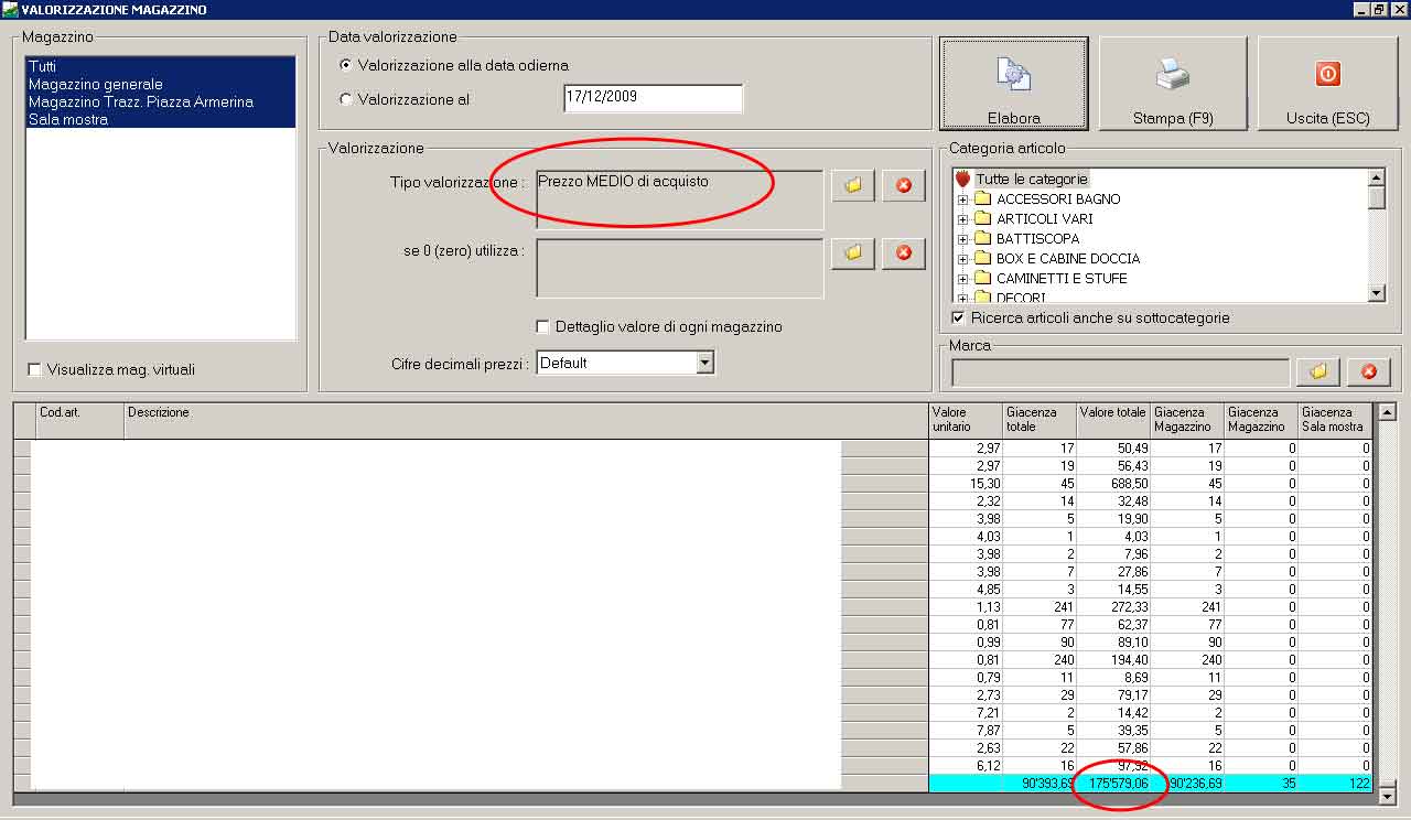 Invio in allegato: - schermata della valorizzazione del magazzino (che riporta un totale di 175.000 euro) - filtro di importazione (utilizzato per importare gli articoli nel documento di vendia) - documento (preventivo) con i prezzi iva esclusa