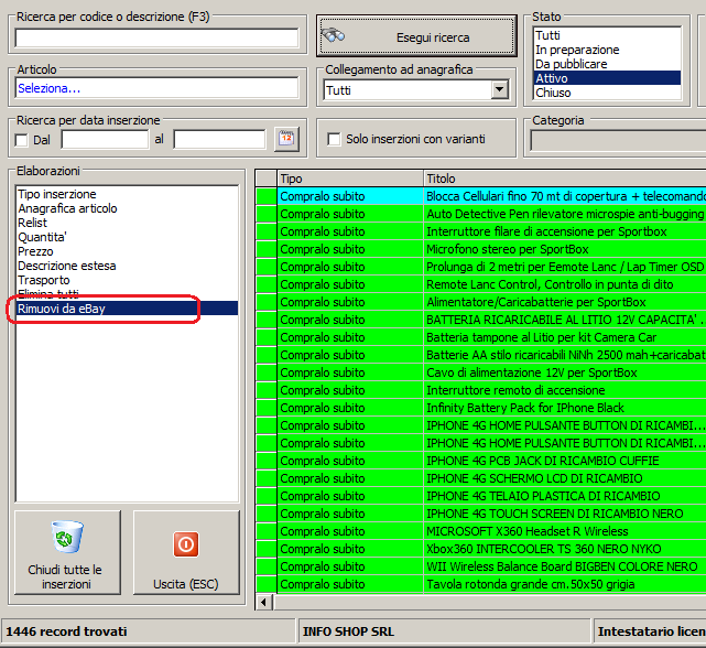 Ora devo fare quest'operazione perchè ci sono stati quei problemi di comunicazione tra ready e ebay per cui la foto principale in alcuni paesi non si visualizzava,adesso che è stato risolto il problema con il nuovo aggiornamento di ready,non posso chiudere le inserzioni manualmente,sono più di 1300,ci impiegherei 1 mese!