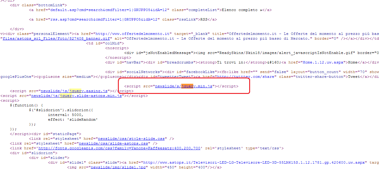 Ciao Fabio, come già indicato nel messaggio precedente questo script si ripresenta nella homepage essendo una pagina personalizzata ed essendoci una slide che viene gestita in javascript, ma non credo sia questo il problema anche perchè come già detto il problema si ripresenta su tutte le pagine del sito, perciò probabilmente va in conflitto con qualche altro script che non riesco a capire anche se non ci sono tutti questi script.