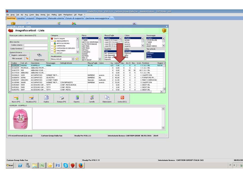 Ok. Un campo specifico per visualizzare l'ASIN non e' previsto (piu' che altro perche' non e' previsto un campo specifico per l'ASIN). Se l'ASIN e' stato inserito tra i codici a barre dell'anagrafica articolo, allora e' possibile estrapolare il valore tramite script (o se e' l'unico codice a barre inserito utilizzando il campo "primo codice a barre inserito") Se invece l'ASIN e' solo associato ad una inserzione Amazon e non e' presente in anagrafica, allora non c'e' possibilita' di visualizzarlo sulla lista articoli (ma si puo' visualizzare dalla lista inserzioni Amazon, quindi dal menu MARKETPLACE / AMAZON - GESTIONE INSERZIONI)