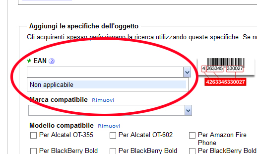 Salve, In occasione dell'aggiornamento di eBay per quanto riguarda il codice EAN, volevo sapere se durante il caricamento delle inserzioni, nel nostro caso, di oggetti appartenenti alla categoria cover e custodie, dove non è obbligatorio il codice EAN, viene creato automaticamente il record senza eventuali impostazioni SE non deve essere inserito alcun codice. Per esempio, attualmente noi scriviamo il CSV omettendo la colonna EAN, ma il programma non ci sta dando problemi nel caricamento. Nel caso in cui, carichiamo l'inserzione manualmente selezioniamo "Codice EAN non applicabile". La domanda è, readypro questo lo fa in automatico? Grazie