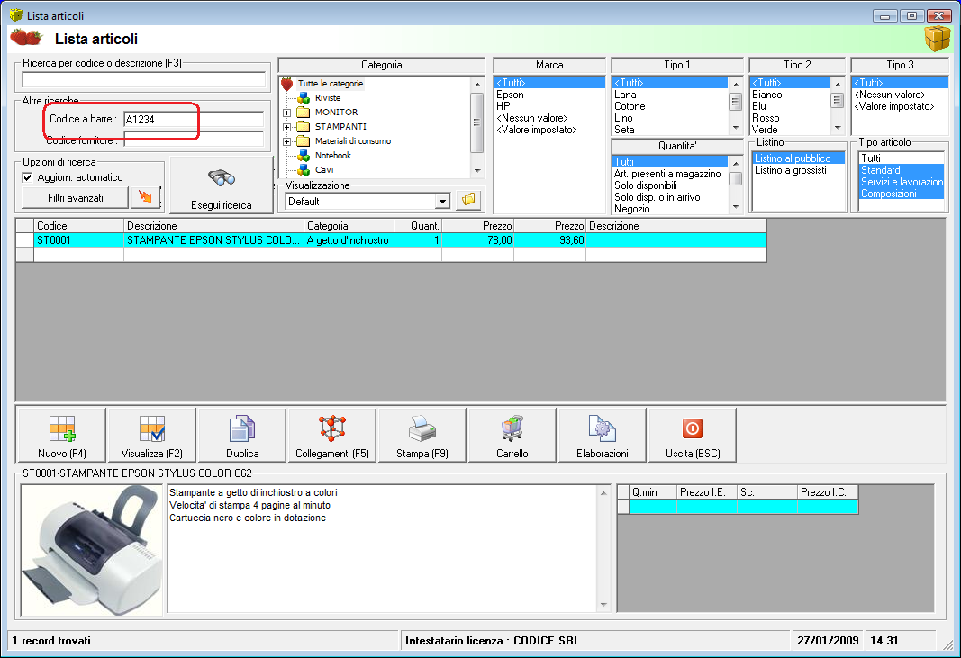 Comunque anche se avessi codificato fin dall'inizio tutti gli articoli con un codice numerico, la ricerca attuale andrebbe a influire anche sulla descrizione, ricercando anche altri articoli in cui il numero è presente.
