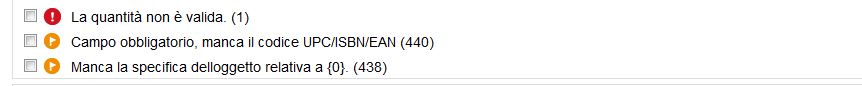 Ovviamente selezionando il flag 'Campo obbligatorio, manca il codice UPC/ISBN/EAN', si entra nello specifico e si visualizzano le inserzioni dove mancano i codici. Ciao