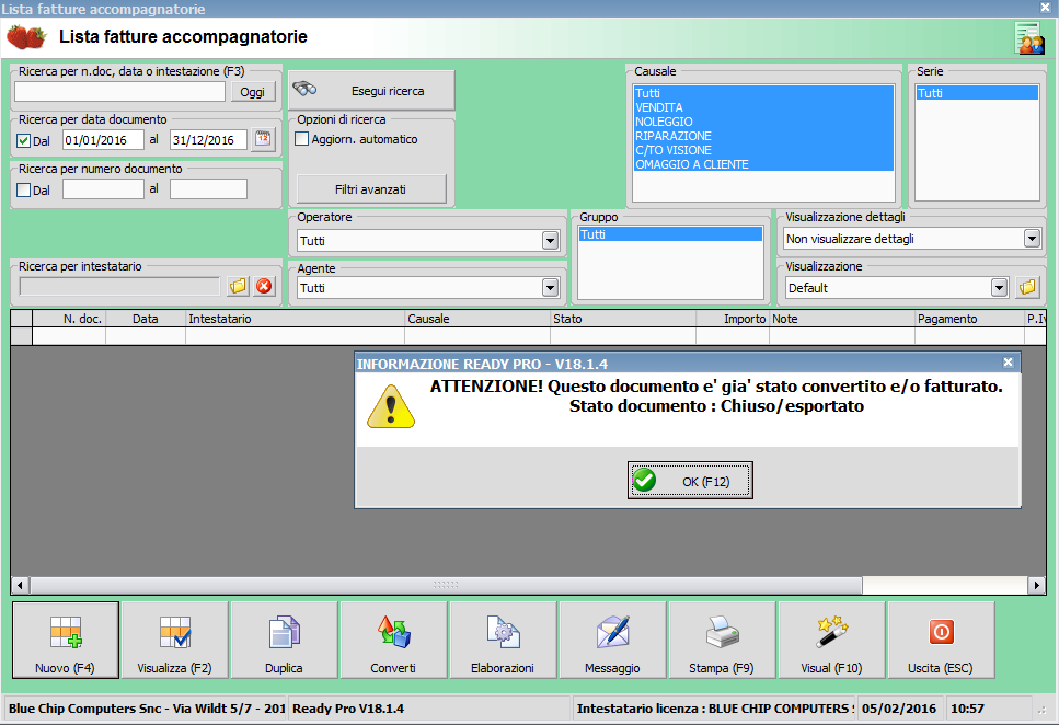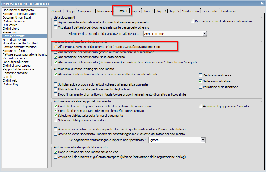 Per l'avviso invece disattiva questo da UTIL / IMPOSTAZIONI DOCUMENTI