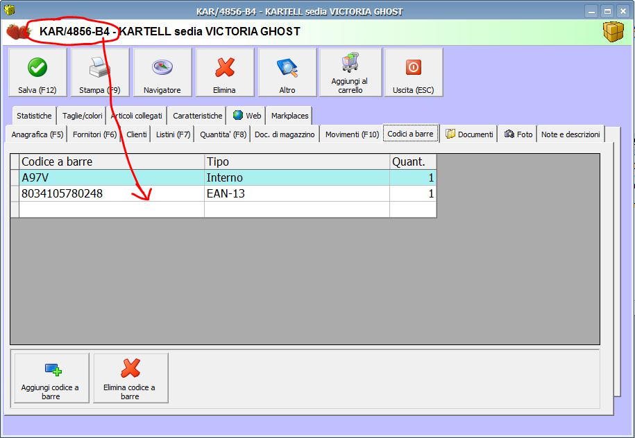 L'EAN è indicato con un asterisco verde ed è quindi obbligatorio