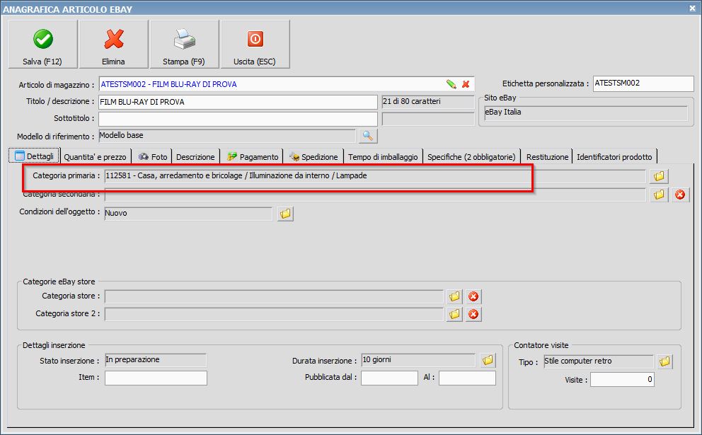 Puo' indicarci qual'e' esattamente la categoria eBay a cui appartiene questo prodotto?