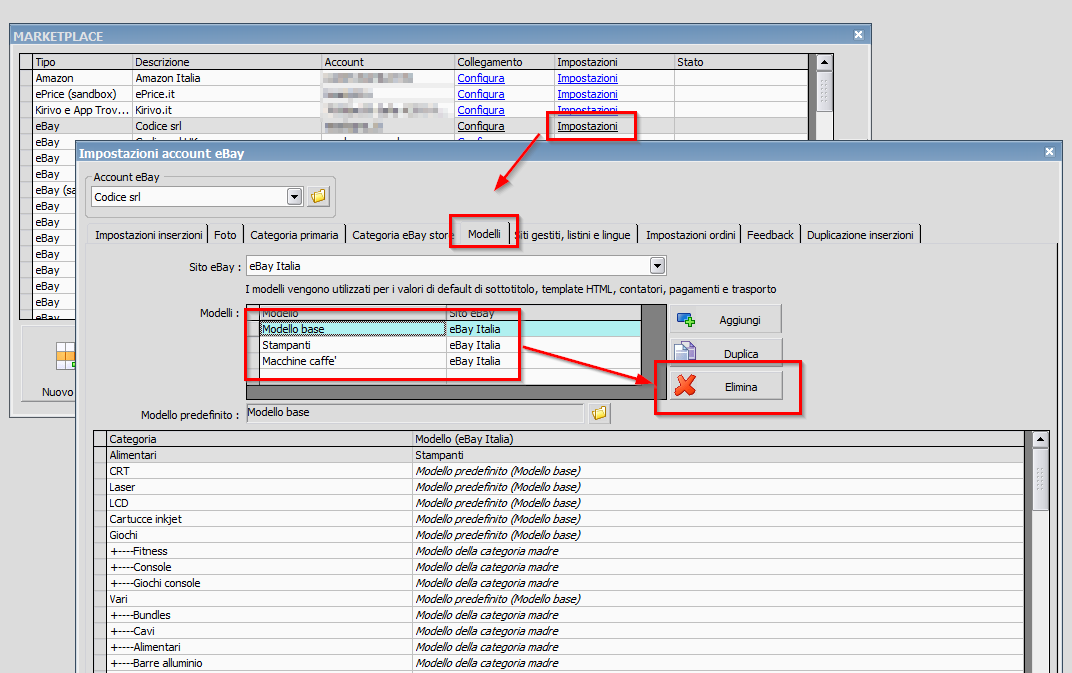 Buongiorno , per una serie di motivi abbiamo deciso di NON lavorare più con ebay e il nostro account è stato bloccato/sospeso , precludendoci qualsiasi accesso alla piattaforma se non per controllare eventuali reclami. Ora , devo per forza di cose , eliminare il mio account da Ready ! Cosa che però non mi è permesso fare in nessun modo. Non appena provo ad eliminare l'account mi dice che ci sono dei modelli collegati. Se provo ad entrare nelle impostazioni esce un avviso con errore 841.