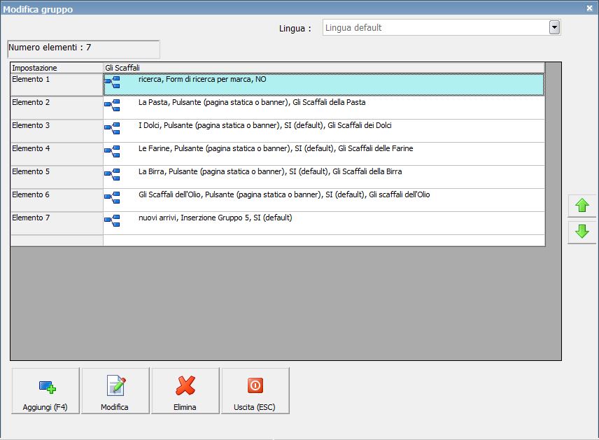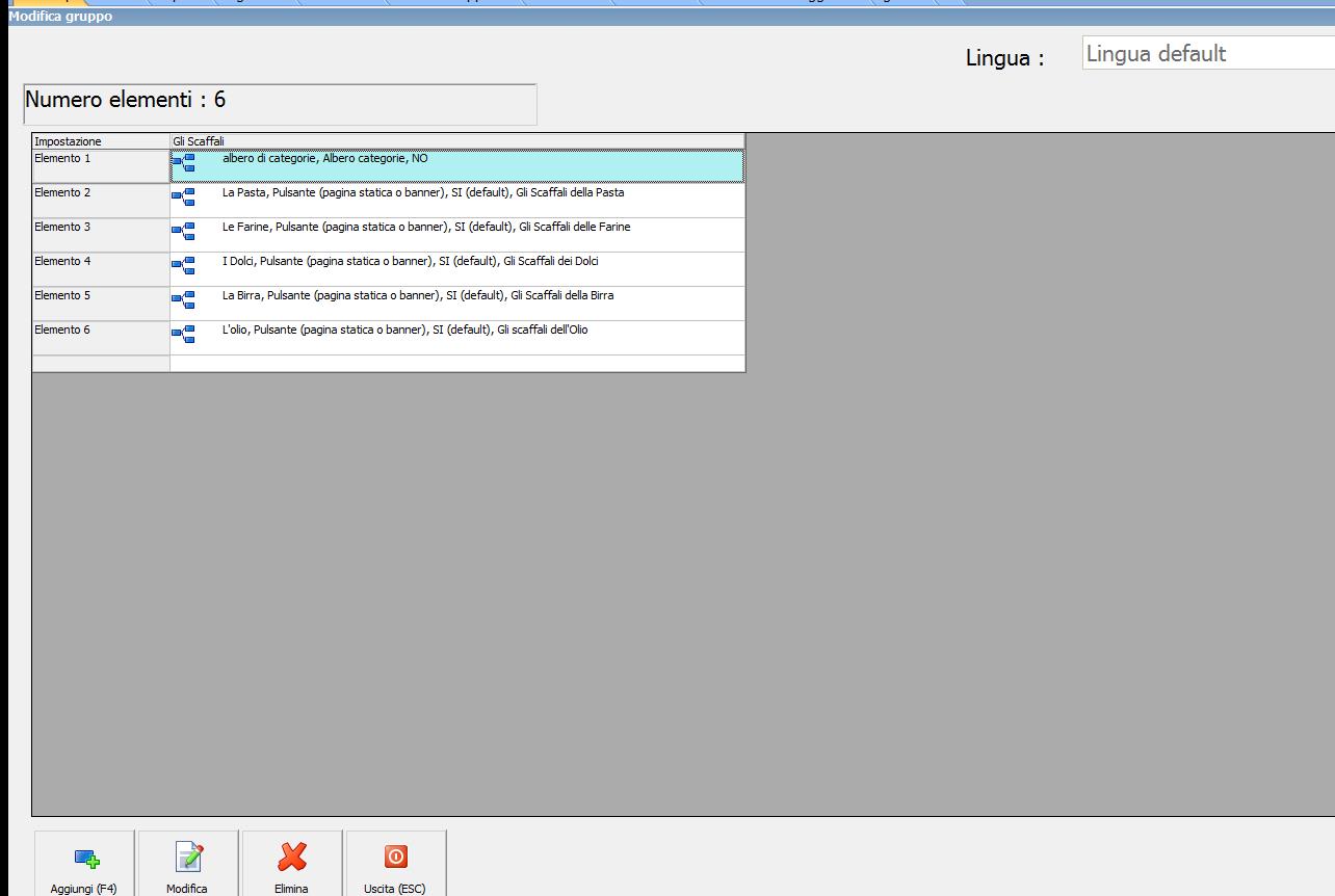 allego lo screen degli elementi configurati nella pagina gli scaffali, e la pag celiachia.