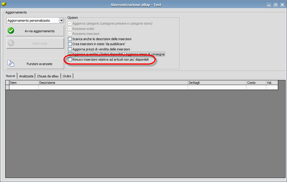 se la quantita' degli articoli in anagrafica (quella che era 20) va a 0 io voglio che non mi si chiudano le 15 inserzioni (ma devo essere io a decidere quando chiudere l'inserzione se da' ancora oggetti attivi in vendita)