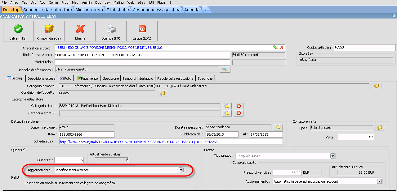 il tutto sta perchè uso tantissime inserzioni con stesso codice per piu' prodotti e non riesce mai a tenere a terra quello che ho in vendita, ma essendo articoli di cui facilmente mi riapprovvigiono, non mi interessa se dovessi venderli anche non tenendoli a terra in una giornata. Insomma su questi articoli io ho bisogno che L'INSERZIONE NON MI SI CHIUDA PER CREARE LA CRONOLOGIA DELLE VENDITE SU EBAY".