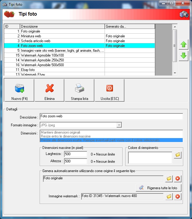 Se crei un nuovo tipo e al suo interno colleghi la foto di origine da cui generarla verranno create solamente le foto del nuovo tipo.