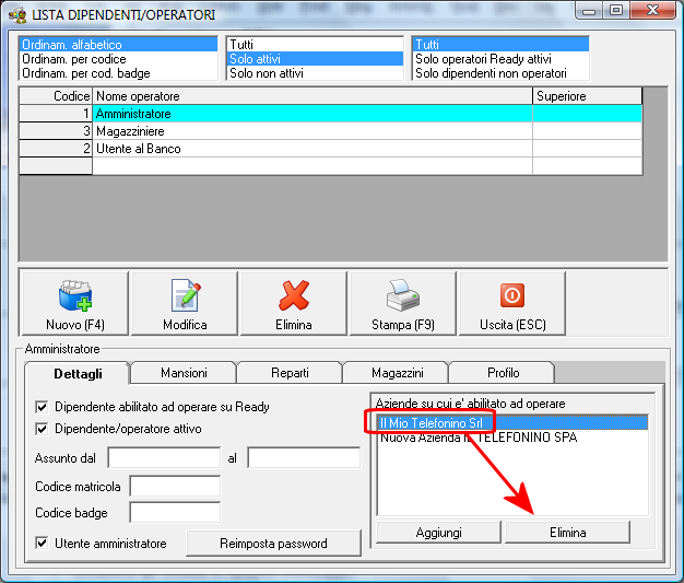 Devi disabilitare la possibilità su quell'operatore di poter entrare nella vecchia azienda: