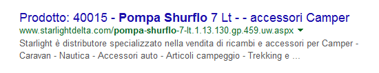 Il primo link che viene restituito è quello giusto, ma riporta nella parte in blu una dicitura che non ha riscontro da nessuna parte "Prodotto: 61628.....". Il cliente ha rimosso la dicitura "Prodotto: tag_numero_prodotto...." da più di due settimane, ma continua ad essere visualizzato un quel modo nei risultati.