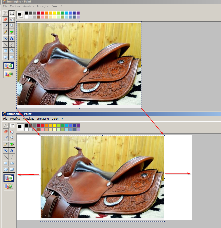 2) Soluzione meno elegante, ma forse piu' semplice senza dover richiedere l'aiuto di uno dei nostri tecnici, e' di creare una immagine con un bordo bianco sufficiente ad evitre quindi il ridimensionamento. Quindi se l'immagine originale e' di 500px inserire un bordo bianco di 100px a sinistra e destra, cosi' da avere una larghezza totale di 700 px