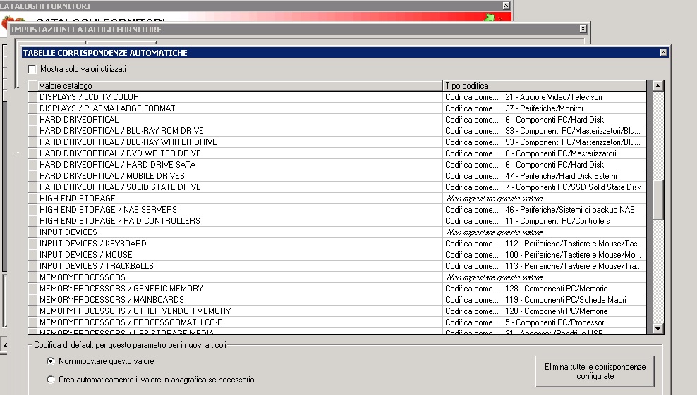 sto importando vari articoli dal catalog Ingram, per esempio oggi lavoravo sulle memorie, loro prevedono un'unica categoria che prende dentro quasi un migliaio di articoli, io ho creato una categoria memorie con varie sottocategorie per esempio ddr2 , ddr3 etc.... ho configurato il plug in in modo che scarichi la categoria memorie e una corrispondenza di categoria con la mia categoria memorie in modo da mandarmi tutti gli articoli nella categoria "madre". A questo punto mi trovo i miei 800 articoli da scremare e distribuire nelle sottocategorie del mio sito, non li voglio però tutti 800 ma decido di eliminarne una parte e quelli rimanenti li sposto a mano nelle sottocategorie assegnando a loro la categoria corretta sfruttando i filtri e il pulsante elaborazioni. Il problema che mi sono ritrovato è che gli articoli che non mi interessano e che ho eliminato disattivandoli sempre con il pulsante elaborazioni mi sono ricomparsi tutti nella categoria memorie dopo aver fatto passare l'automatismo che ho creato e che è per me essenziale ossia di rimuovere dal web tutti gli articoli non disponibili a magazzino e di pubblicare tutti gli articoli disponibili. Sono ricomparsi ovviamente solo quelli disponibili, io pero pensavo che non la disattivazione dell'articolo non sarebbe più ricomparso indipendentemente dalla sua disponibilità presso il fornitore.... come posso risolvere per ottenere il risultato che mi ero prefissato? forse dovevo eliminarli? ma poi al prossimo aggiornamento non me li creerebbe di nuovo? grazie e scusate se sono stato un po' lungo