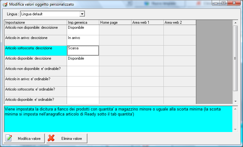 Salve, un fornitore mi ha dato uno stock "ragionato" della sua merce e mensilmente devo riordinarla fino ad avere in magazzino le stesse quantità iniziali, ho pensato di impostare come scorta la quantità da lui fornita, in modo da riordinare in automatico tutto ilnecessario. Qua mi sorge un problema: così facendo appena vendo qualcosa, online mi viene fuori il messaggio "quantità:scarsa".  Nella gestione della visualizzazione della disponibilità (quella Avanzata) avrei bisogno di poter visualizzare "in arrivo" (che mi serve parecchio) ma non "scarsa"...è possibile? Esiste un sistema alternativo per riordinare "a restock" senza messaggi strani online?