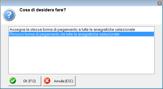 eliminare dalle anagrafiche clienti la forma di pagamento