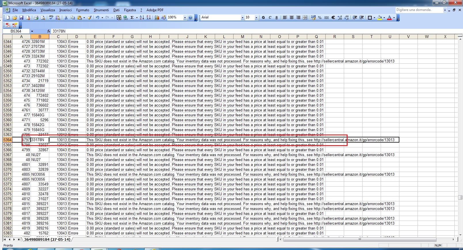 Ho fatto l'aggiornamento con il vecchio plugin, la situazione su Amazon non è cambiata, in allegato il report dove è indicato che non ha effettuato nessuna modifica in quanto presenta un errore sull'art. 33178N (il 33178 non è mai stato pubblicato)