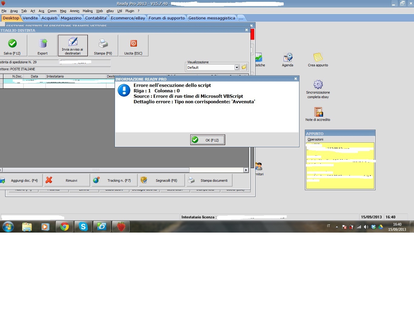 Buonasera, quando vado in distinta spedizione vettori, scelgo il vettore, aggiungo i dumenti dopodiché invio l'avviso ai destinatari (mail) per avvertirli dell'avenuta spedizione con il relativo documento e codici tracking (dove presenti), mi da i seguenti errori (allego N. 3 foto). Questo vale per ogni spedizione e documento che faccio. Se ignoro l'errore mi allega però regolarmete il file ed il messaggio viene spedito. Da cosa dipende tale errore? Come può essere eliminato? Grazie.