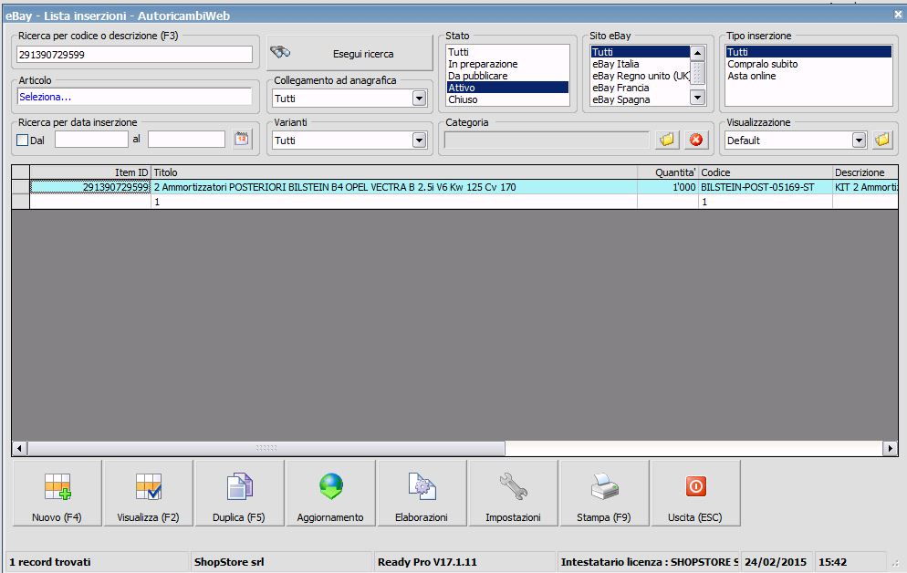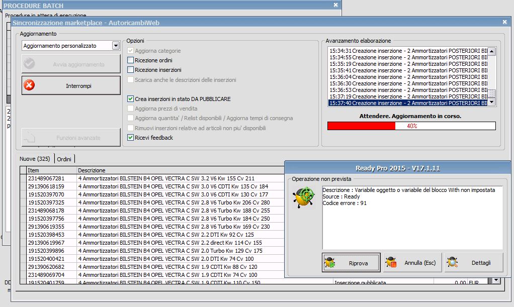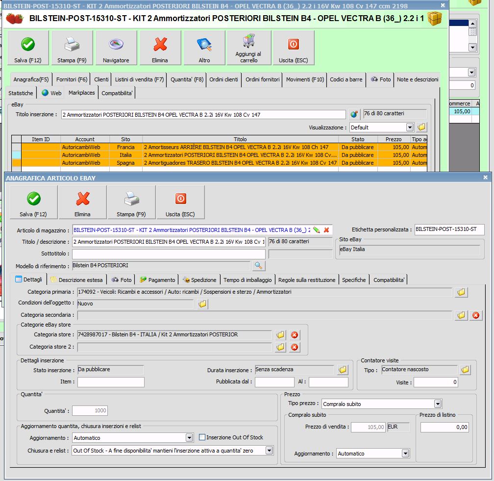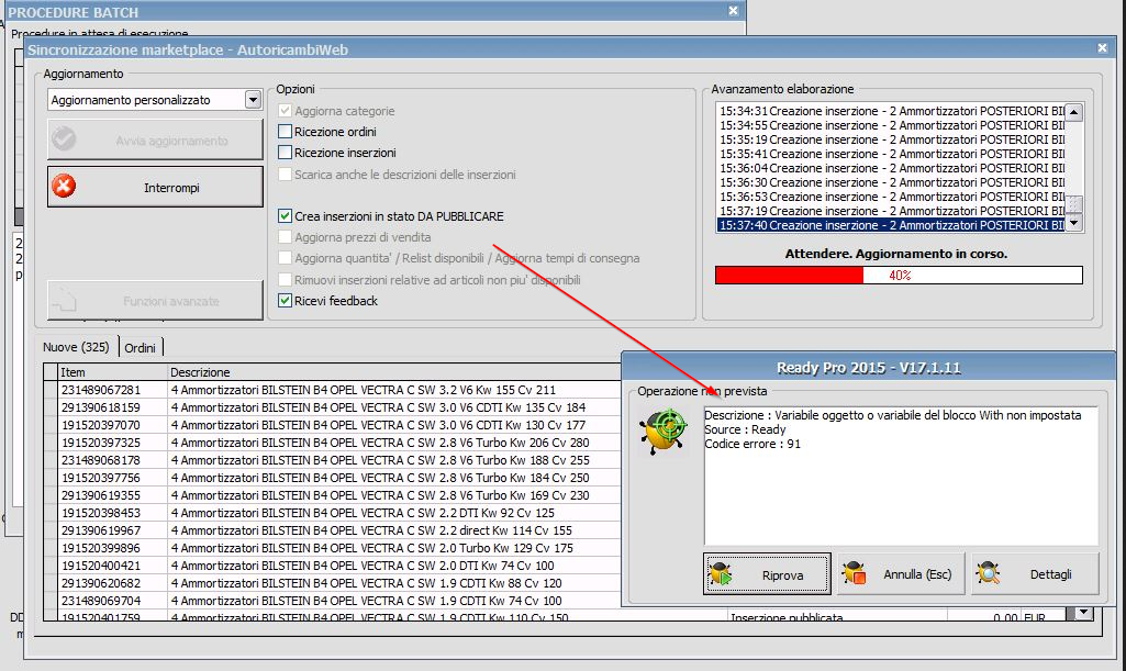 Diciamo che si siamo accorti che ready aveva creato un'inserzione ma non l'aveva agganciata all'articolo di magazzino