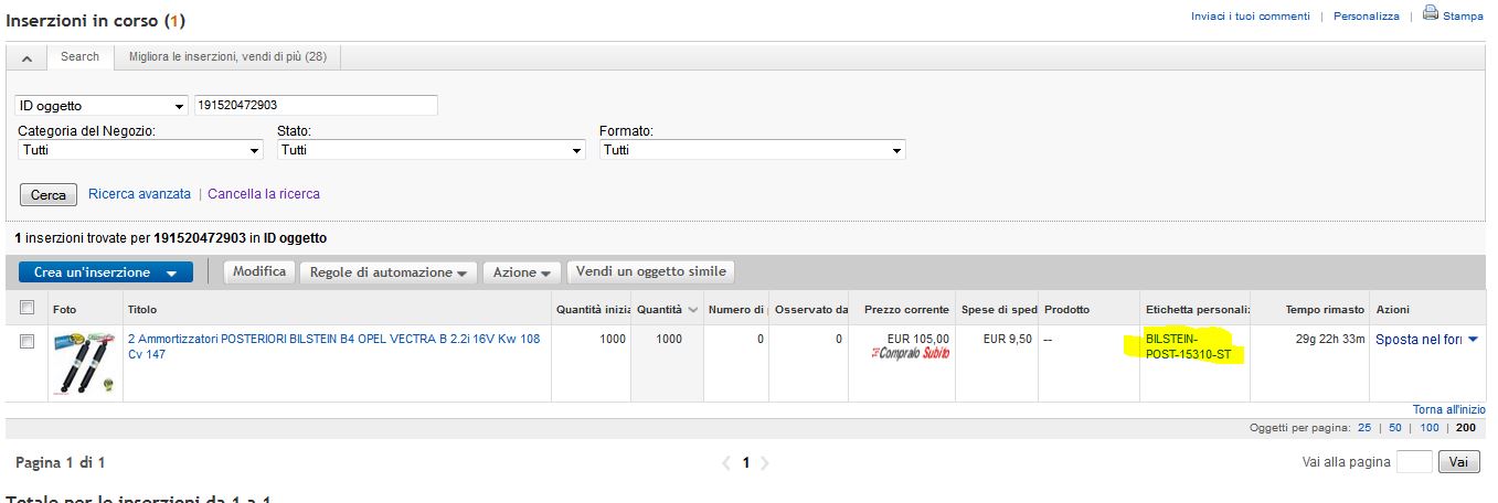 Citazione: Diciamo che si siamo accorti che ready aveva creato un'inserzione ma non l'aveva agganciata all'articolo di magazzino Se l'inserzione non e' stata creata da un articolo di magazzino, in che modo l'avete creata? Su Ready Pro si possono creare solo inserzioni partendo da articoli di magazzino, non si possono creare diversamente.