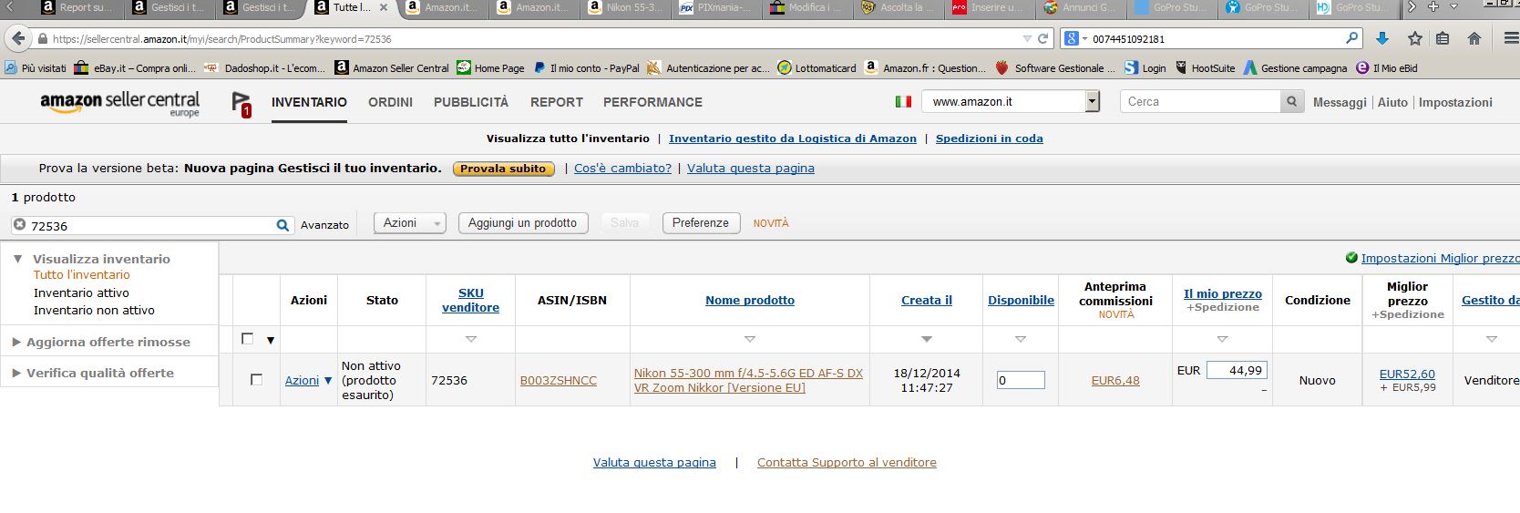 Un'altra possibilita' e' che aveste codificato in anagrafica l'articolo Nikon, pubblicato su Amazon, poi avete eliminato gli articoli su Ready Pro (ma non da Amazon) e su Ready Pro sono stati codificati nuovi prodotti riciclando pero' codici articolo vecchi. Se fosse questo il caso dovreste pero' avere molti articoli che non corrispondono direi, perche' puo' essere solo la conseguenza di una elaborazione massiva