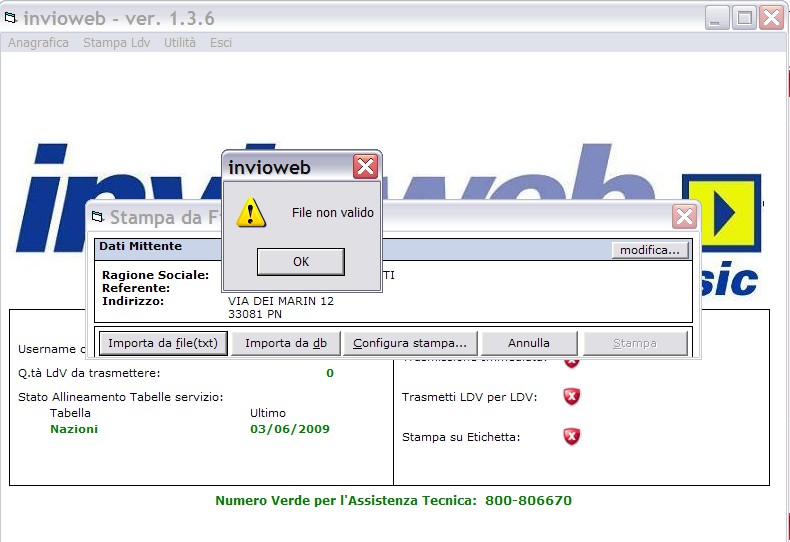Ho letto un po' di discussioni in giro ma nessuno mi pare usa invioweb, in ogni caso mi pare di capire che i parametri sda sono comuni a tutti gli applicativi ... quindi ho creato una distinta di prova che ho esportato come file TXT, solo che quando la importo ricevo un errore mooooolto generico FILE NON VALIDO