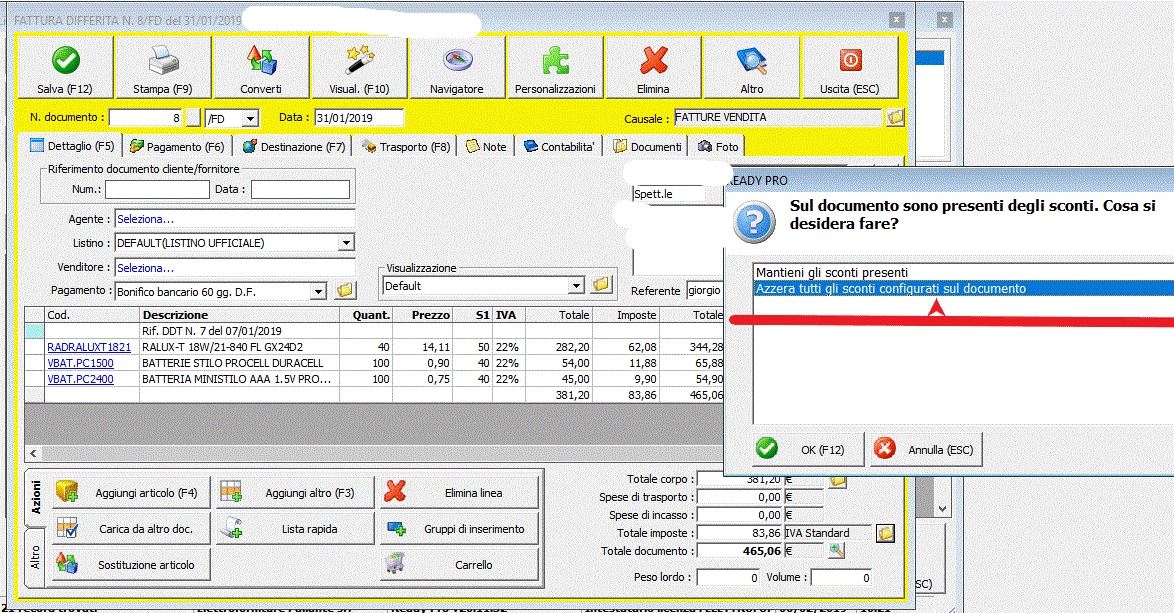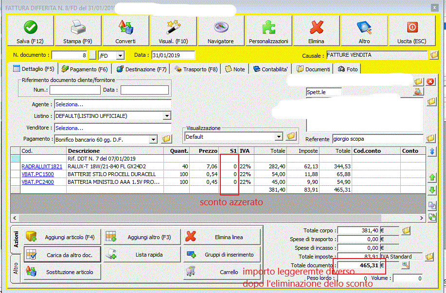 Buongiorno volevo porre un quesito sulla fatturazione attiva che abbiamo fatto fin'ora: il documento "Fattura Differita" ,che scaturaiva dalle DDT fatte nel mese, lo abbiamo inpostato con la visualizzazio nel corpo fattura senza il prezzo unitario e lo sconto applicato.