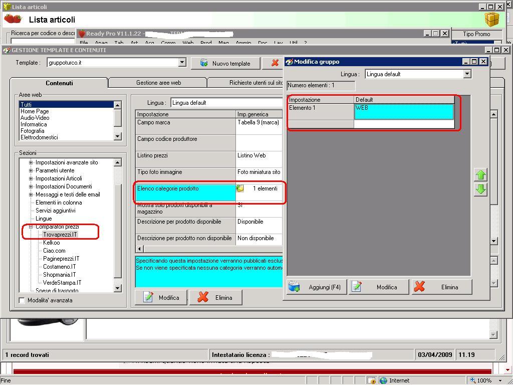 Buongiorno, mi chiedevo se era possibile pubblicare sui comparatori solo alcuni articoli di quelli pubblicati sul nostro e-commerce. L'unico modo che (forse) ho trovato è quello di creare una categoria apposita chiamata ad esempio WEB), associare gli articoli interessati ANCHE a questa categoria e poi associare la categoria come nello screenshot. Ditemi per favore se ciò è corretto e se c'è un'elaborazione per associare tutti gli articoli a questa nuova categoria in modo automatico. Grazie e buona giornata. Mauro.