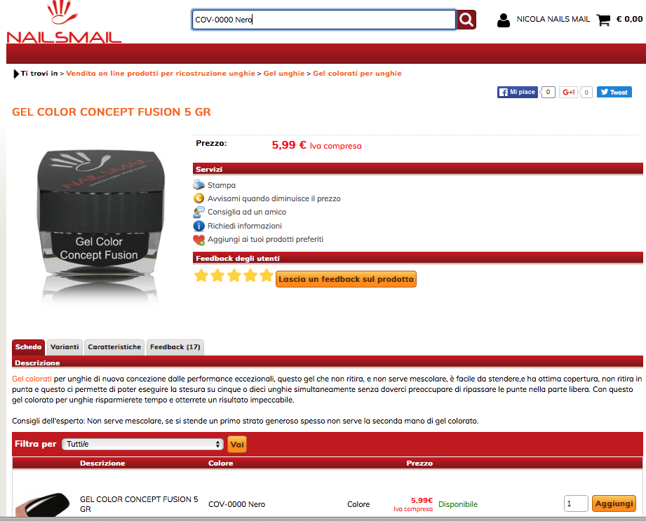 Citazione: ma se nel sito https://www.nails-mail.com/default.asp?idA=0 provi ad inserire parte di descrizione presente nella tabella colore non restituisce il risultato, di nessuna di queste tabelle- Puo' farci un esempio di una ricerca che ha effettuato?