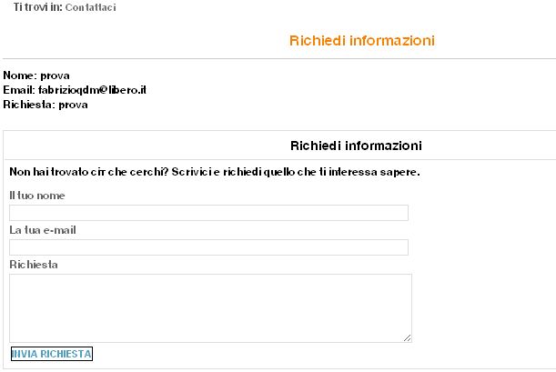 Il form di richiesta informazioni invia una mail all'indirizzo di default del sito (info@miosito.com) e non rientra nelle richieste del sito.