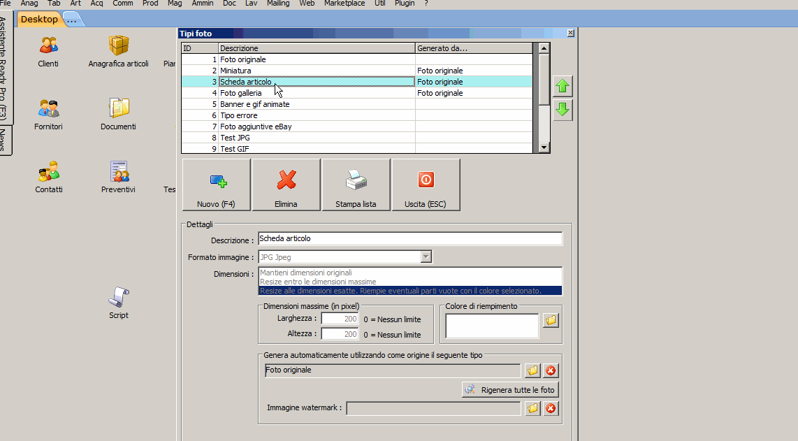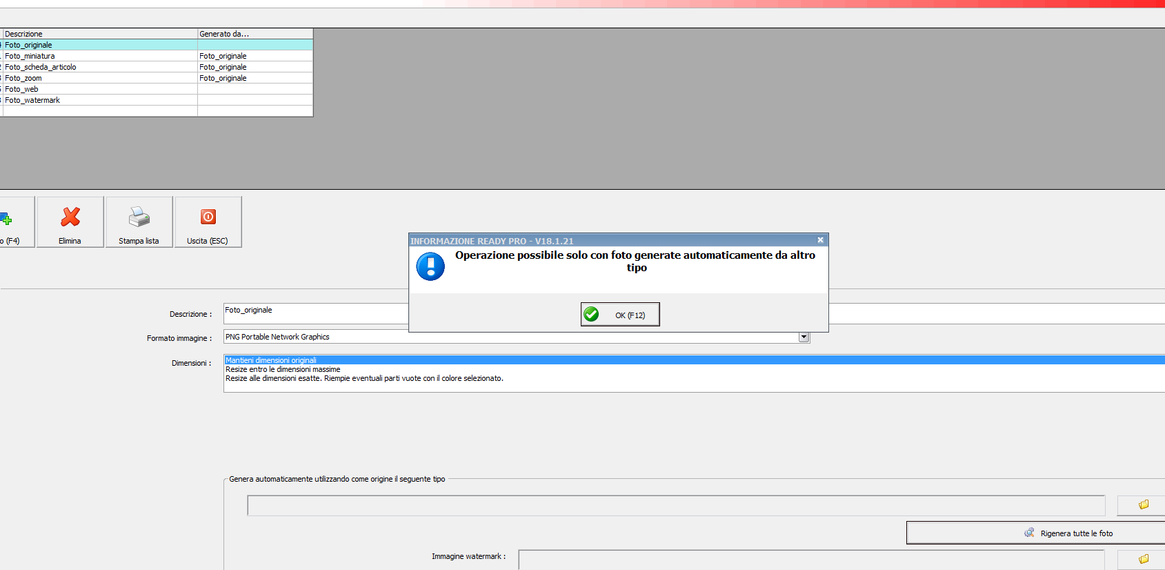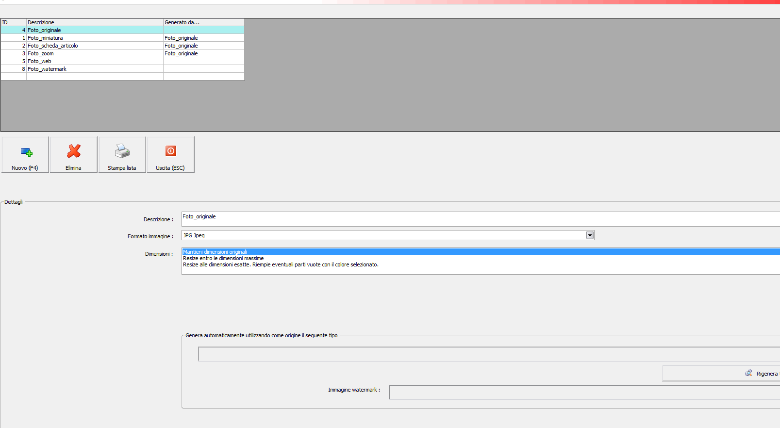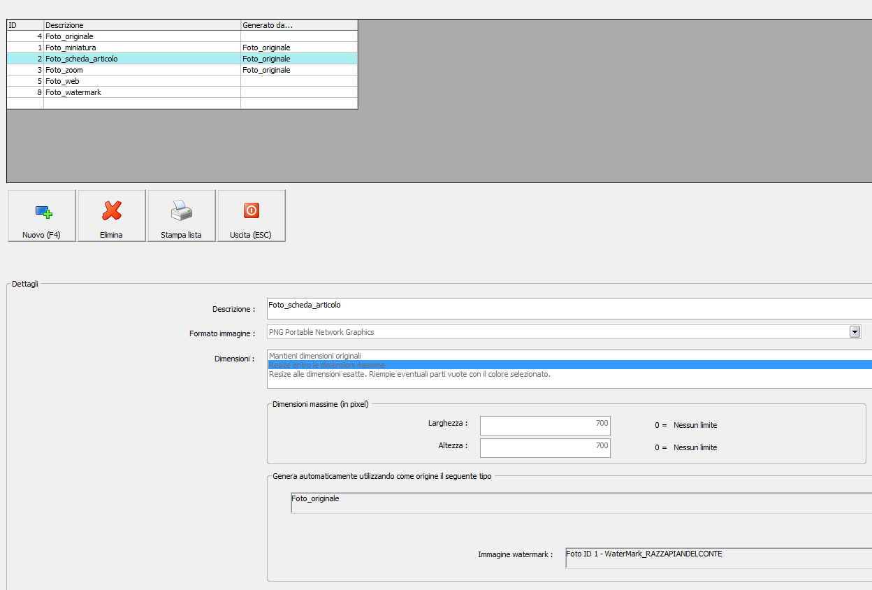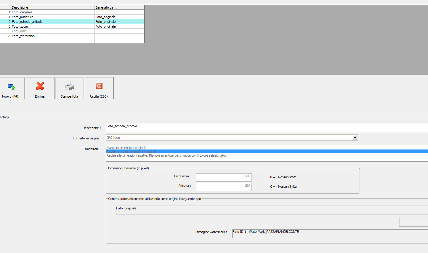 La foto sul sito e' 700x700 mentre nei tipi foto nella finestra iniziale era di 500x500 Direi che non puo' essere la stessa, oppure avete modificato notevolmente la configurazione dei tipi foto. A questo punto servirebbero dei nuovi screenshot per vedere come sono configurati i tipi foto adesso (sia del tipo foto scheda che usate sul sito, sia del tipo foto "originale" se l'avete modificato rispetto al default)