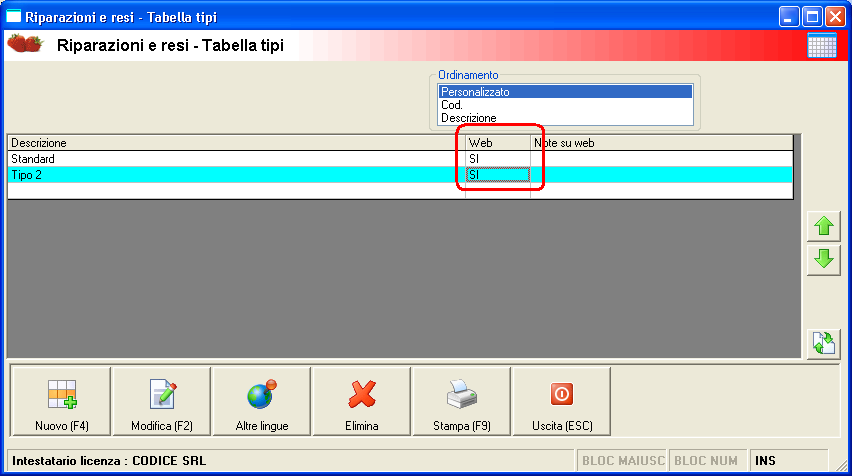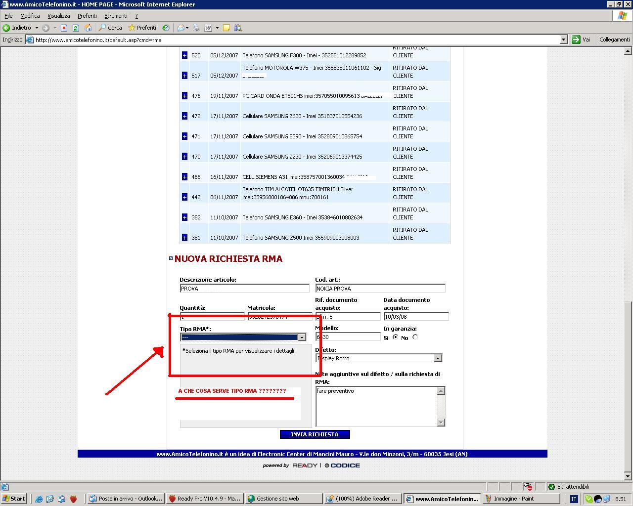 Ora su difetto mi vedo tutte le casuali che ho messo in TABELLA DIFETTI, mentre su TIPO RMA non cč nulla all'interno della selezione lato web.