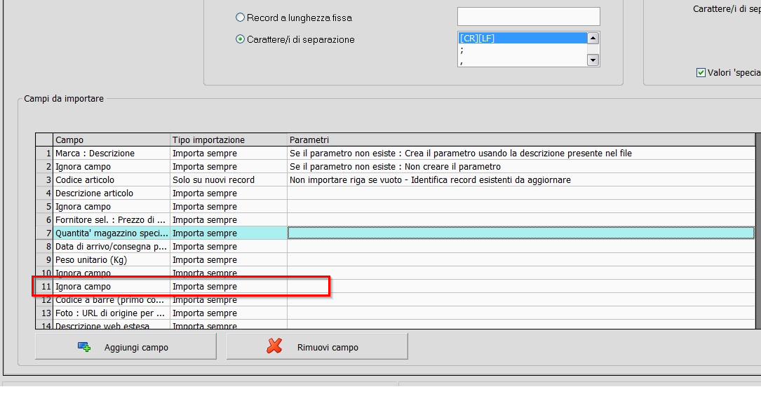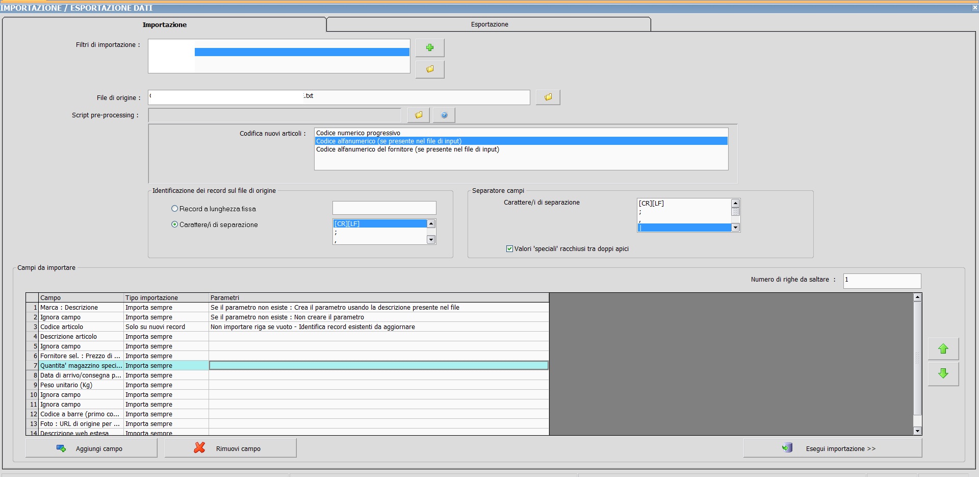 Usare un filtro di importazione di questo tipo direttamente sul vostro archivio, dove immagino che siano gia' presenti degli articoli, e' comunque MOLTO pericoloso, perche' rischiate che degli articoli vengano sovrascritti e che vengano create decine o centinaia di categorie mischiate con le categorie che avete adesso in archivio. Io consiglierei piuttosto di creare un filtro di importazione da ACQ / CATALOGHI FORNITORI o di fare una verifica piu' approfondita in teleassistenza con un nostro tecnico, prima di procedere con una importazione di questo tipo