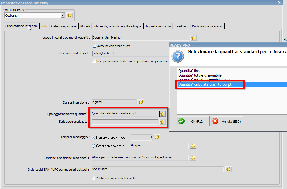 Per esempio, impostando quantità 5, ready dovrebbe pubblicarmi articoli superiori a tale quantità e rimuovermi tutti gli altri con tale quantità o minore.