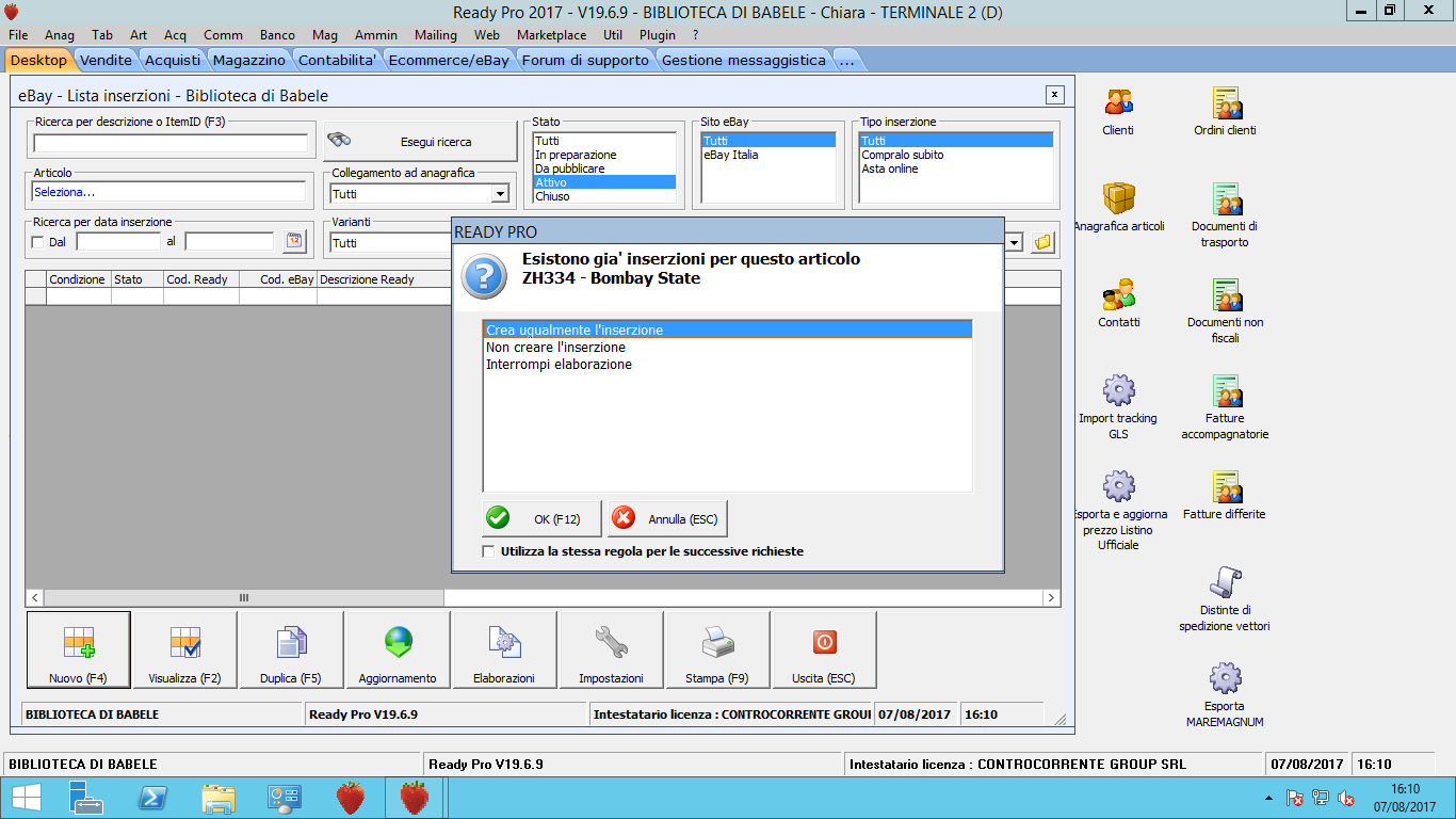 ma su Readypro mi da che su ebay non è inserita questa inserzione