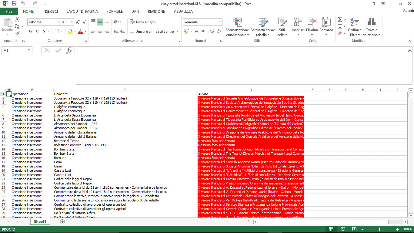 Citazione: è possibile visionare le nostre inserzioni non pubblicate con il rispettivo errore dopo l'aggiornamento? Le inserzioni non pubblicate potete vederle sulla lista inserzioni ricercando quelle "da pubblicare". Gli errori invece sono visibili solamente sulla finestra di aggiornamento, non sono memorizzati per una consultazione successiva