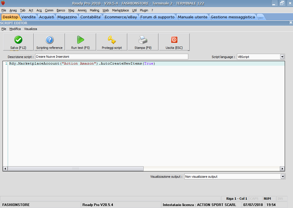 Quindi lanciando lo script: - Rdy.MarketplaceAccount("Action Amazon").AutoCreateNewItems(True) 1- Ready verifica se l' articolo inserito in anagragiche è esistente su Amazon 2- Verificato che l' articolo è esistente su Amazon, allora lo pubblica.